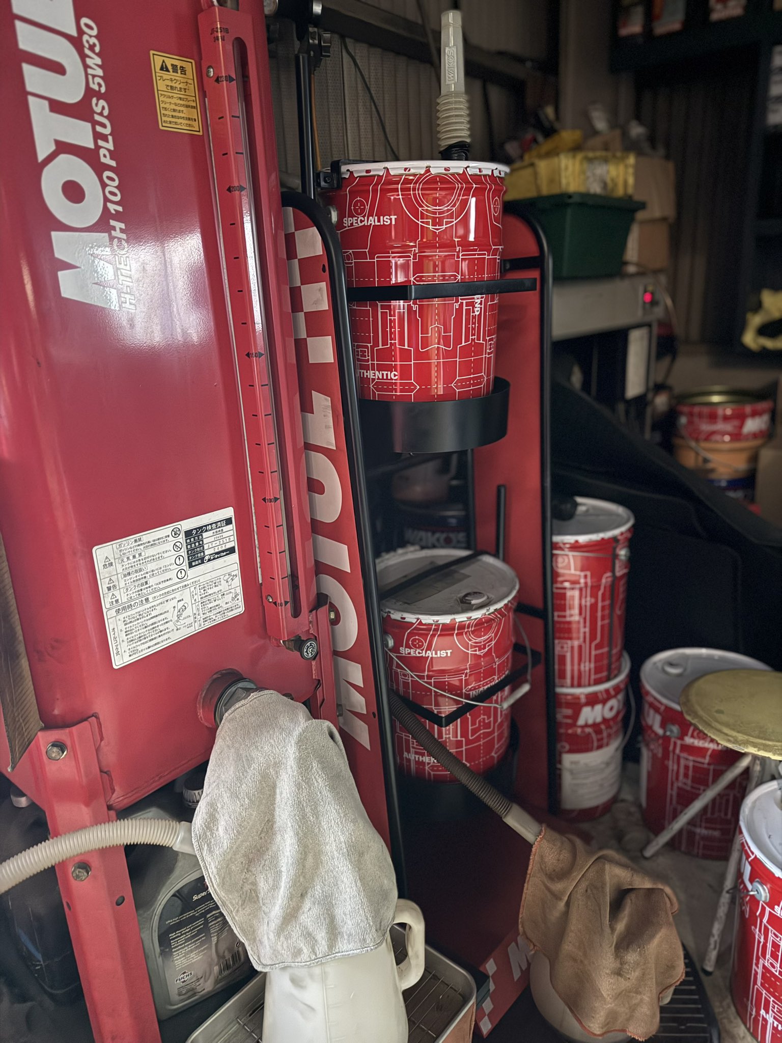 使い古された工具類や日常使いする油脂類など、 整備の現場でいつも使われ続けている道具達。