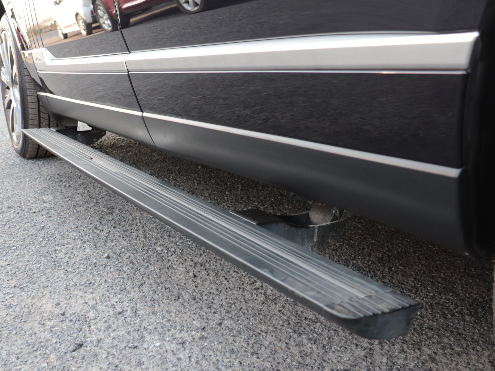 ロングホイールベースでは全長が5205mmとなり、通常の5005mmより200mm長くなります。これは全て後部座席足元のスペースに当てられます。後部座席ドアの長さを通常グレードと見比べてみてください。